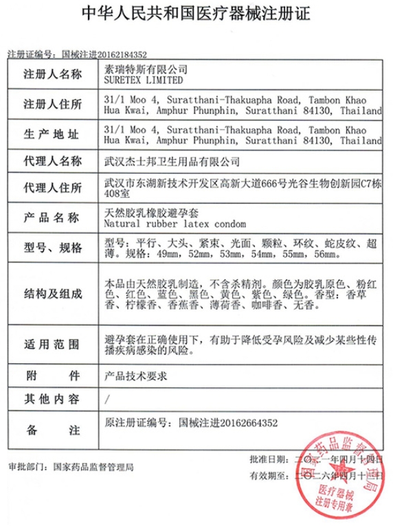 避孕套(杰士邦) 本品由天然膠乳制造,不含殺精劑。顏色為膠乳原色、粉紅色、紅色、藍(lán)色、黑色、黃色、紫色、綠色。香型:香草香、檸檬香、香蕉香、薄荷香。