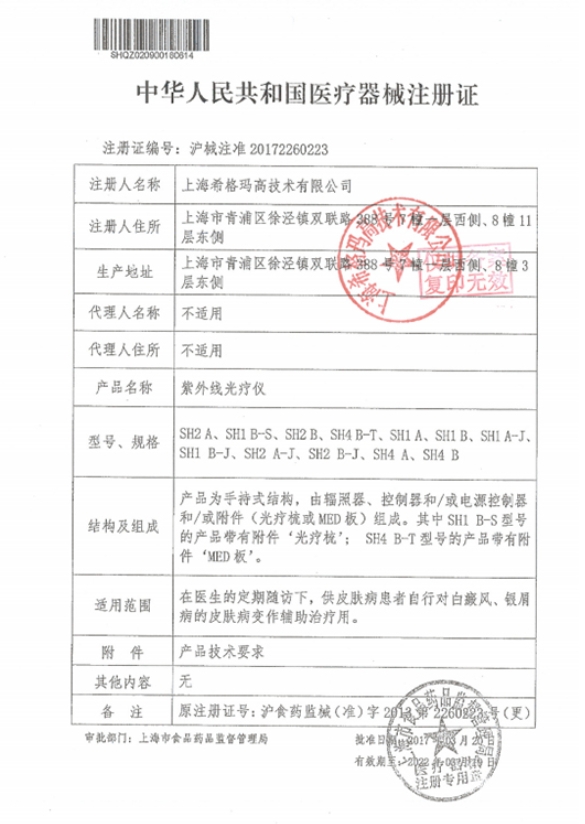 【注冊號】滬食藥監(jiān)械(準(zhǔn))字2013第2260223號