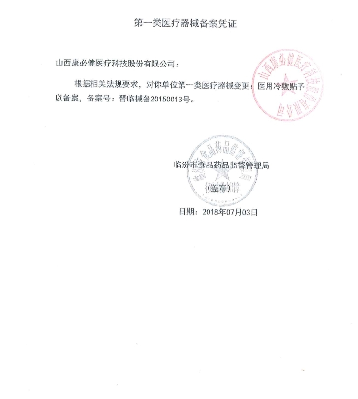 康每樂醫(yī)用冷敷貼由無紡布背襯層、凝膠層、離型紙覆蓋層等部分組成。適用于閉合性軟組織損傷的冷敷理療,對各種疼痛的康復(fù)有輔助作用。撕開包裝袋,將貼片的保護隔膜揭開,貼在使用部位清潔處。如遇不良反應(yīng),請停止使用本品。如癥狀加重,應(yīng)及時就診。