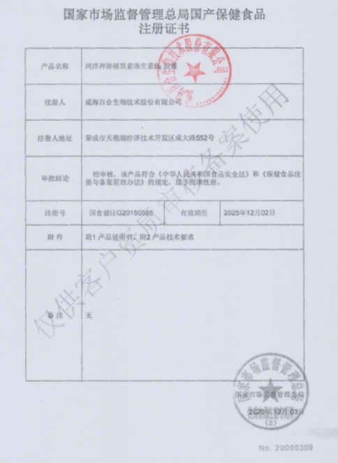紫一鴻洋神牌褪黑素維生素B6膠囊保健功能:本品經(jīng)動(dòng)物實(shí)驗(yàn)評價(jià),具有改善睡眠的保健功能;適宜人群:睡眠狀況不佳的成人;不適宜人群:少年兒童、孕婦、乳母。每日1次,每次2粒,口服。本品不能代替藥物;適宜人群外的人群不推薦食用本產(chǎn)品。