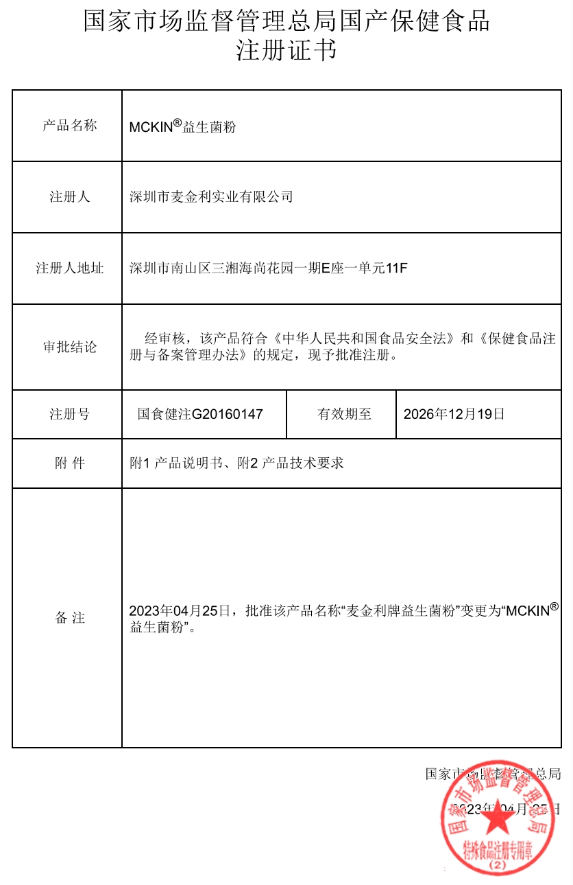 國(guó)食健注G20160147的麥金利益生菌粉30g(1.5g*20袋)對(duì)應(yīng)條形碼“6937588931492”裝的換新包裝了,新包裝產(chǎn)品名稱為“MCKIN?益生菌粉”,舊包裝產(chǎn)品名稱為“麥金利牌益生菌粉”。里面的益生菌粉質(zhì)量不變,只是更換了包裝盒,新舊包裝隨機(jī)發(fā)貨