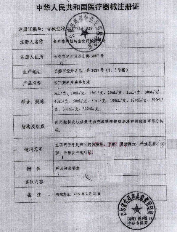 更多相關:甲殼胺生物活性醫(yī)用敷料 醫(yī)用敷料皮膚修復液 金達膚王