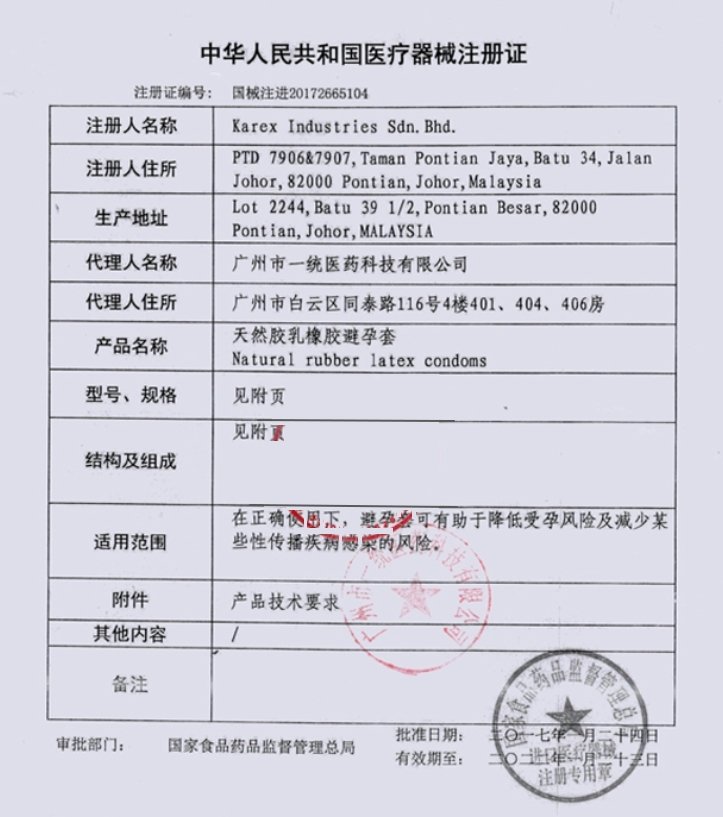 注冊人名稱 Karex Industries Sdn.Bhd.