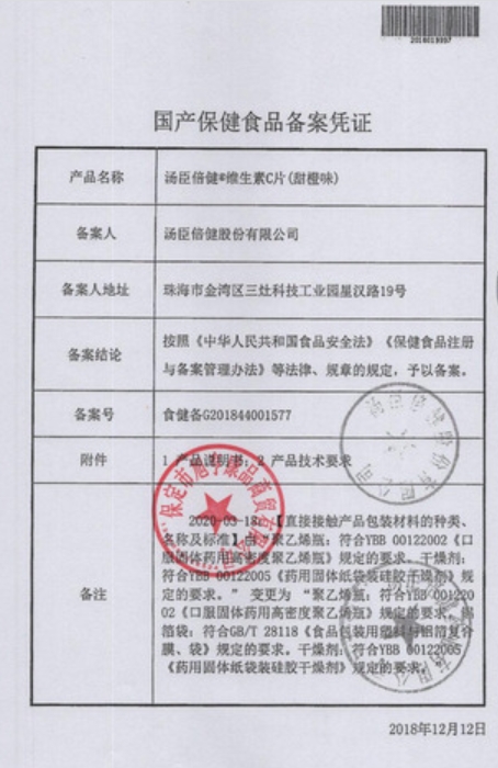 更多相關:維生素C片 湯臣倍健 佰健生物