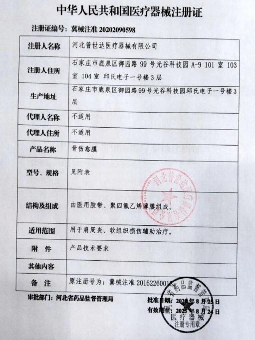 骨傷愈膜(歐眾源)用于肩周炎、軟組織損傷輔助治療。外用,貼患處。將患處皮膚表面洗凈,擦干,揭開覆蓋在貼劑上的醫(yī)用膠帶,對(duì)準(zhǔn)疼痛處貼敷,24小時(shí)更換一次。