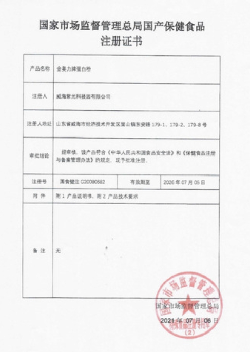 白云山金奧力牌蛋白粉保健功能:本品經(jīng)動(dòng)物實(shí)驗(yàn)評(píng)價(jià),具有增強(qiáng)免疫力的保健功能;適宜人群:免疫力低下者;不適宜人群:嬰幼兒、孕婦、乳母。每日1次,每次10g,加入牛奶、果汁等流質(zhì)食品攪拌食用。