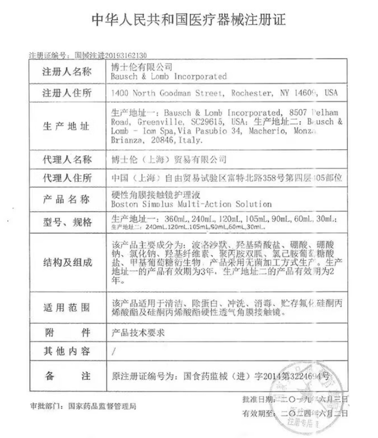 產(chǎn)品名稱 硬性角膜接觸鏡護(hù)理液Boston Simplus Multi-Action Solution
