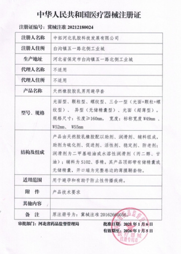 幽美刺激顆粒持久裝避孕套由天然膠乳橡膠配以助劑、潤滑劑、輔料組成,助劑為硫化劑、促進劑、活性劑、穩(wěn)定劑、防老劑;潤滑劑為二甲基硅油或水溶性潤滑劑(丙二醇、甘油);輔料為SiO2、香精。其產(chǎn)品頂部帶有儲精囊或無儲精囊,開口端為完整卷邊的薄膜鞘套物。