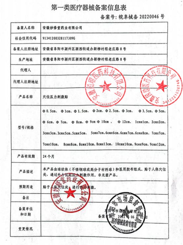 葵花金典萬痛筋骨貼穴位壓力刺激貼由球狀體(不銹鋼球或高分子材料球)醫(yī)用壓敏膠、背襯布和防粘紙或膜組成。貼于人體穴位處,通過外力僅起壓力刺激作用。所含成分不發(fā)揮紅外輻射治療、磁療作用。不含有發(fā)揮藥理學、免疫學或者代謝作用成分。不包含《一類目錄》附錄所列成分。非無菌產(chǎn)品。
