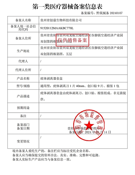 尤克町疣體剝離器套盒由疣體剝離刀、創(chuàng)口貼、棉簽組成。非無菌提供。用于跖疣、濕疣、尋常疣、扁平疣等皮膚贅生物疣的清除。