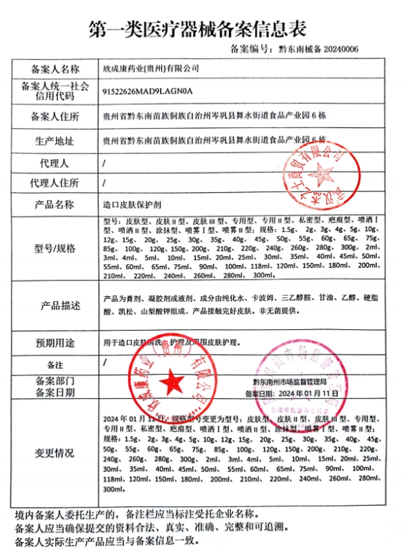防曬隔離噴霧造口皮膚保護劑為膏劑、凝膠劑或液劑、成分由純化水、卡波姆、三乙醇胺、甘油、乙醇、硬脂酸、凱松、山梨酸鉀組成、產(chǎn)品接觸完好皮膚。非無菌提供。用于造口皮膚清洗、護理及周圍皮膚護理。