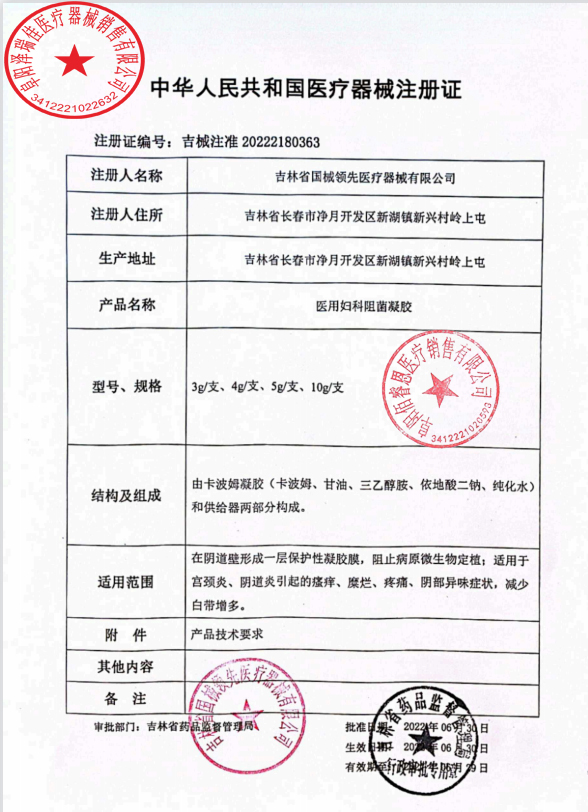 醫(yī)用婦科阻菌凝膠(無憂圣果/太集正通)由卡波姆凝膠和供給器兩部分構(gòu)成。在陰道壁形成一層保護(hù)性凝膠膜,阻止病原微生物定植;適用于宮頸炎、陰道炎引起的瘙癢、糜爛、疼痛、陰部異味癥狀,減少白帶增多。