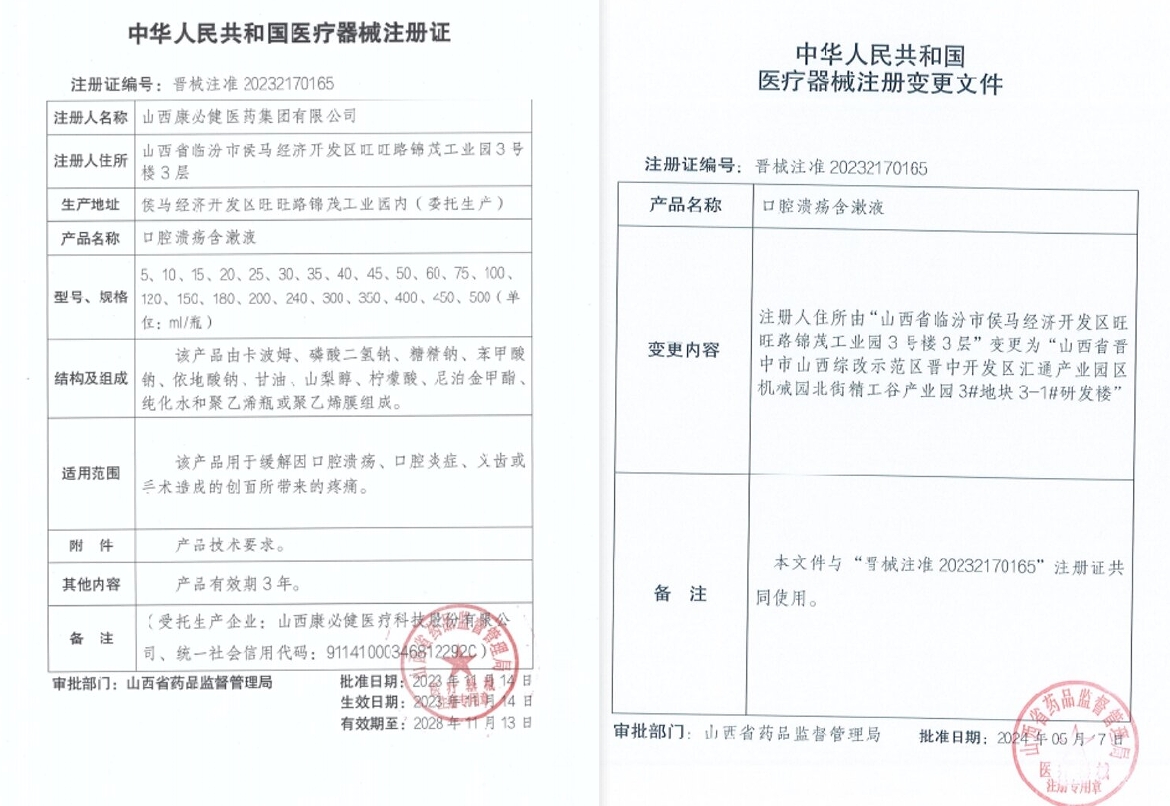 廣敬二廠口腔潰瘍含漱液由卡波姆、磷酸二氫鈉、糖精鈉、苯甲酸鈉、依地酸鈉、甘油、山梨醇、檸檬酸、尼泊金甲酯、純化水和聚乙烯瓶或聚乙烯膜組成。用于緩解因口腔潰瘍、口腔炎癥、義齒或手術造成的創(chuàng)面所帶來的疼痛。