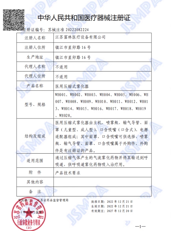 富林醫(yī)用壓縮式霧化器由主機(jī)、電源適配器、霧化裝置組成(含霧化杯、咬嘴、面罩、松緊帶、輸氣導(dǎo)管、 轉(zhuǎn)接頭(選配))。霧化裝置是有注冊(cè)證的產(chǎn)品。通過(guò)壓縮氣體產(chǎn)生的氣流霧化藥物并將其輸送到呼吸道,供呼吸道霧化藥物吸入治療用。