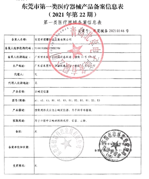 修正正畸定位器按使用形式分為正畸定位器。為手持手動器械。非無菌提供,使用前由使用機構根據(jù)說明書進行消毒。用于口腔中正畸材料的成型、安裝、去除。產(chǎn)品說明:采用硬度適中的材質,適用中輕牙齒不整齊、錯位不是很嚴重可以直接佩戴,使用周期約為3個月。