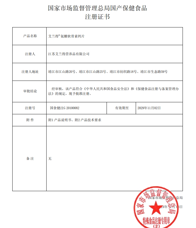 旭福艾蘭得氨糖軟骨素鈣片保健功能:本品經(jīng)動(dòng)物實(shí)驗(yàn)評(píng)價(jià),具有增加骨密度的保健功能;適宜人群:中老年人;不適宜人群:少年兒童、孕婦、乳母。每日3次,每次2片;吞食。本品不能代替藥物。適宜人群外的人群不推薦食用本產(chǎn)品。本品添加了營養(yǎng)素,與同類營養(yǎng)素同時(shí)食用不宜超過推薦量。