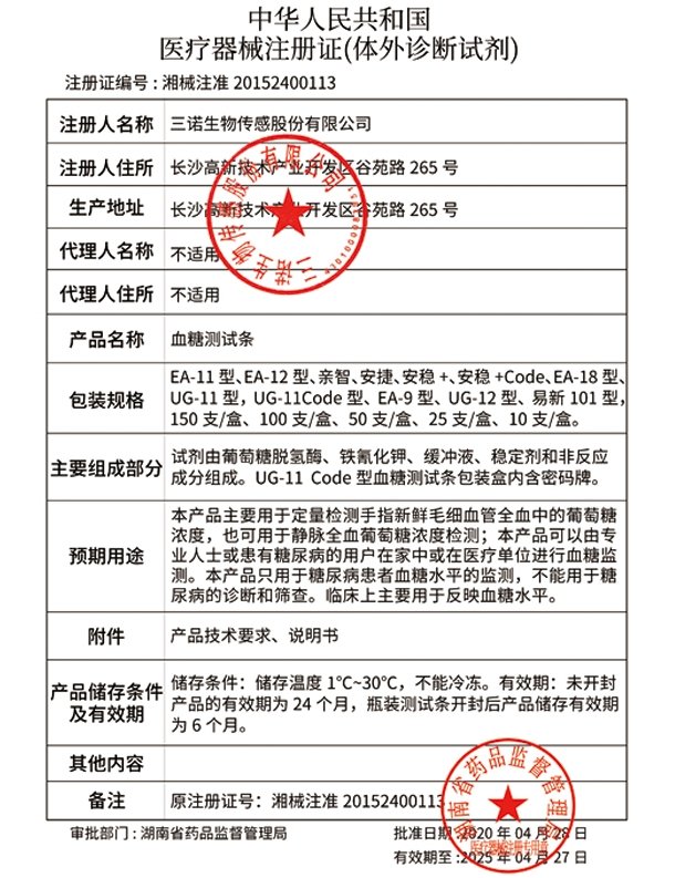 三諾血糖測(cè)試條主要用于定量檢測(cè)手指新鮮毛細(xì)血管全血中的葡萄糖濃度,也可用于靜脈全血葡萄糖濃度檢測(cè);本產(chǎn)品可以由專業(yè)人士或患有糖尿病的用戶在家中或在醫(yī)療單位進(jìn)行血糖監(jiān)測(cè)。本產(chǎn)品只用于糖尿病患者血糖水平的監(jiān)測(cè),不能用于糖尿病的診斷和篩查。臨床上主要用于反映血糖水平。