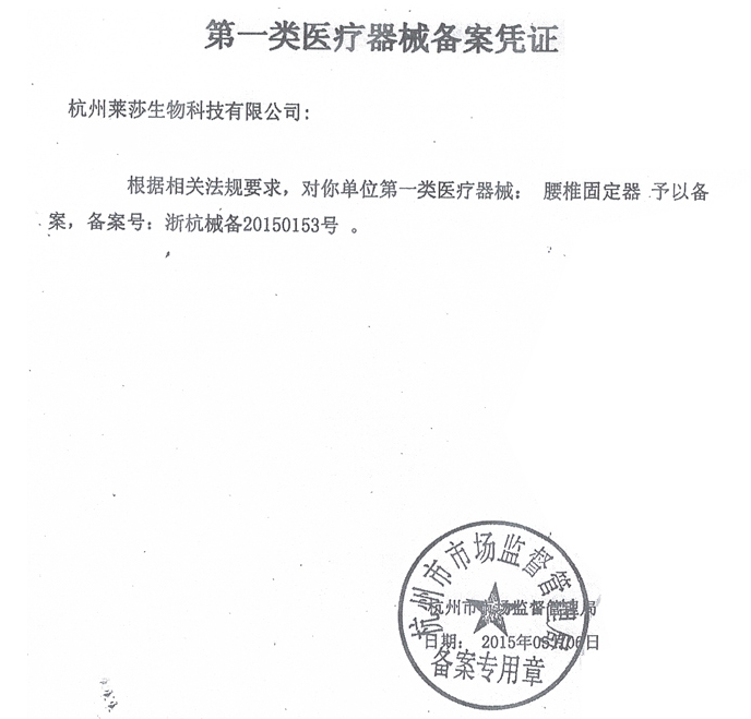 羅樂氏腰椎固定器采用高分子材料、聚酯纖維、鋁合金、不銹鋼、粘合帶制成。不與體內(nèi)使用的醫(yī)療器械連接。非無菌提供。用于骨折或軟組織等損傷的外固定。