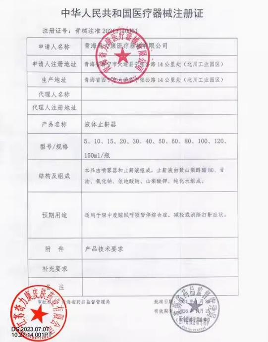 安臣液體止鼾器由噴霧器和止鼾液組成,止鼾液由聚山梨醇酯80、甘油、氯化鈉、依地酸鈉、山梨酸鉀、純化水組成。適用于輕中度睡眠呼吸暫停綜合癥,減輕或消除打鼾癥狀。本產(chǎn)品可多次使用,每次用后注意蓋好保護(hù)蓋,置于通風(fēng)干燥處。