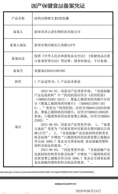 紐利安牌維生素E軟膠囊保健功能:補(bǔ)充維生素E;適宜人群:需要補(bǔ)充維生素E的成人;不適宜人群:17歲以下人群及孕婦、乳母。每日1次,每次1粒,食用方法:口服,飯后溫開水送服。本品不能代替藥物。不宜超過推薦量或與同類營養(yǎng)素同時(shí)食用。