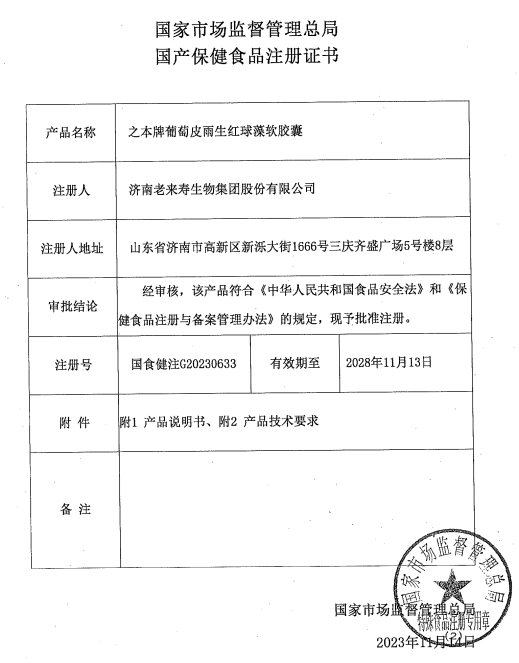 更多相關(guān):之本 葡萄皮雨生紅球藻軟膠囊 濟(jì)南老來壽生物