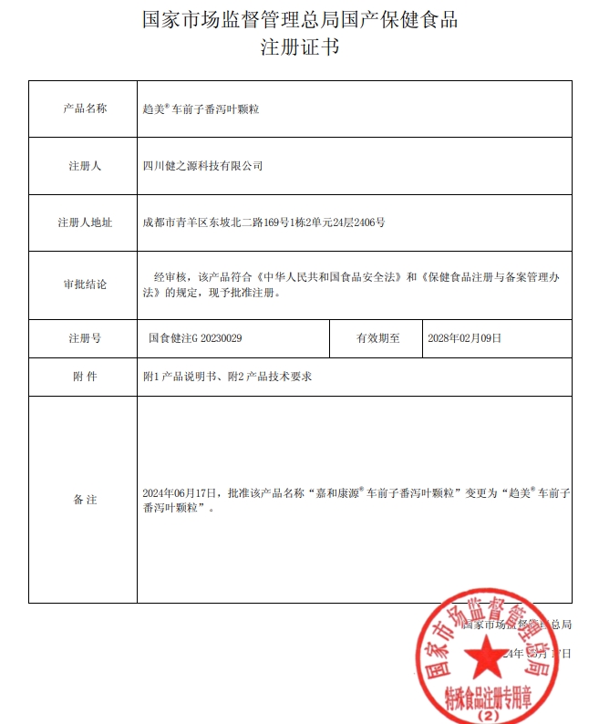 洛酈妃趨美車前子番瀉葉顆粒保健功能:有助于潤(rùn)腸通便;適宜人群:便秘者;不適宜人群:少年兒童、孕婦、乳母。每次1袋,每日2次,沖服。本品不能代替藥物;適宜人群外的人群不推薦食用本產(chǎn)品。