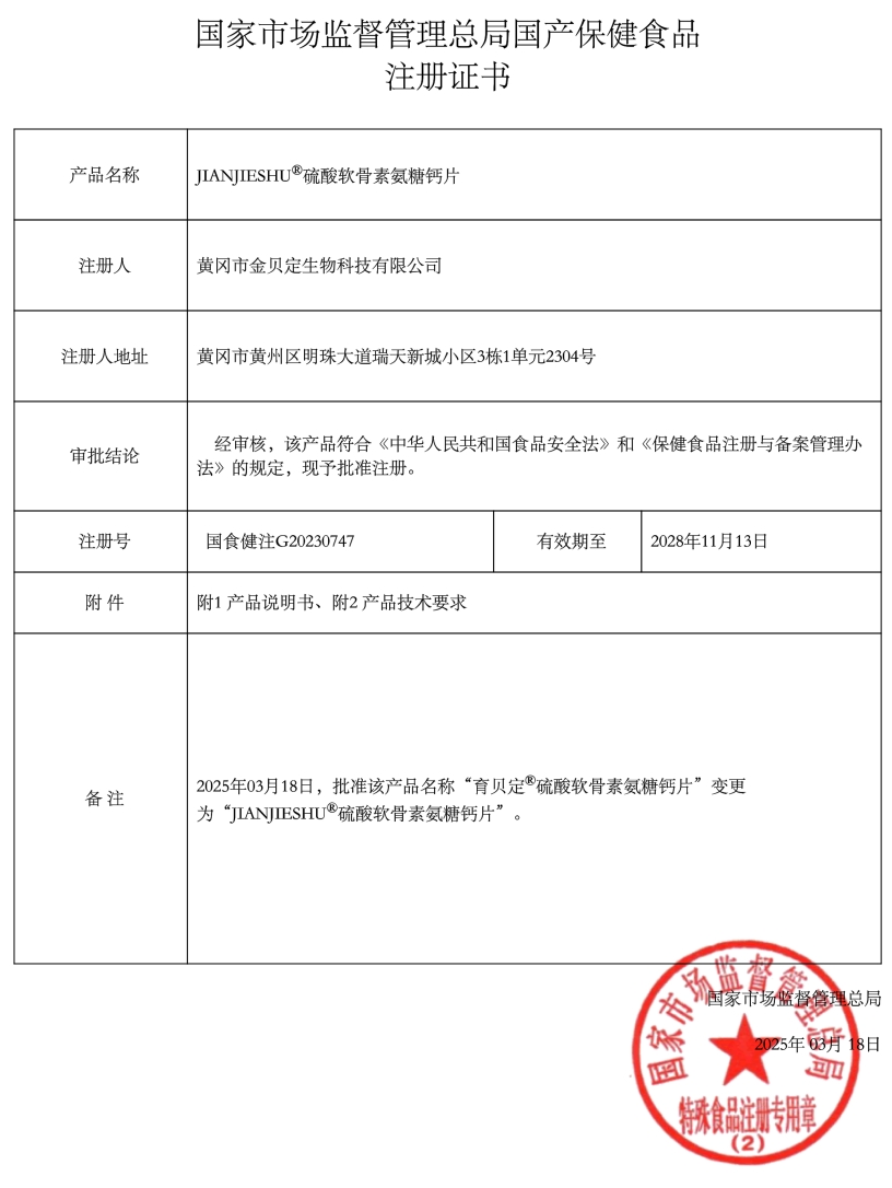 福記坊JIANJIESHU硫酸軟骨素氨糖鈣片保健功能:本品經(jīng)動物實(shí)驗(yàn)評價,具有有助于改善骨密度的保健功能;適宜人群:中老年人;不適宜人群:少年兒童、孕婦、乳母。每日1次,每次4片,口服。本品不能代替藥物。