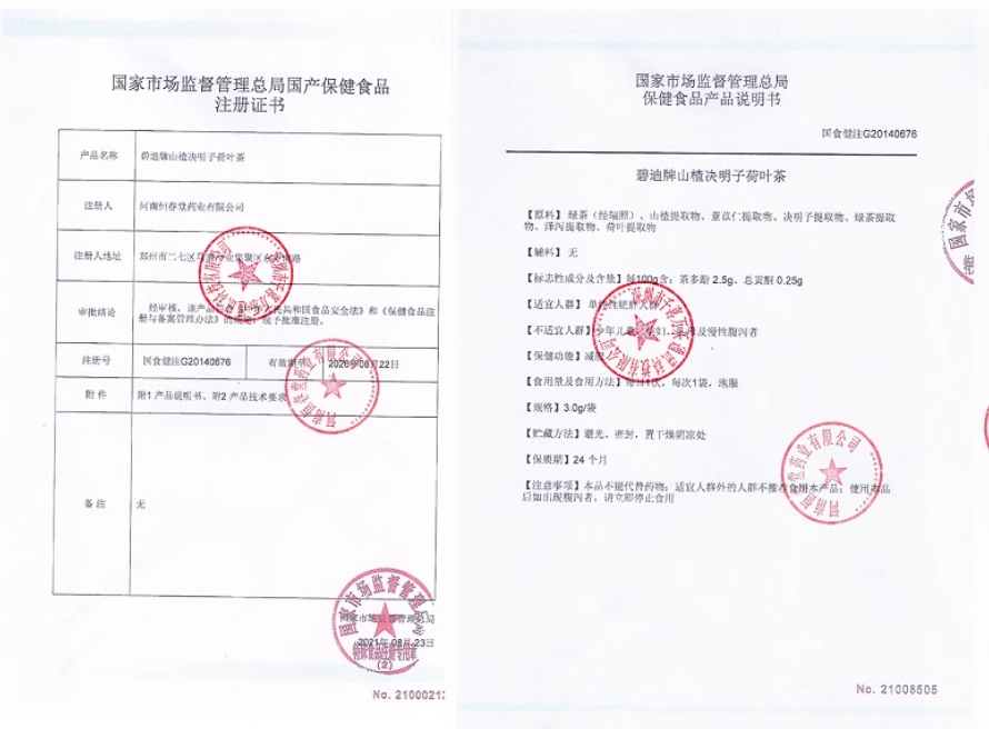 憶谷味碧迪牌山楂決明子荷葉茶保健功能:減肥;適宜人群:單純性肥胖人群;不適宜人群:少年兒童、孕婦、乳母及慢性腹瀉者。每日1次,每次1袋,泡服。本品不能代替藥物;適宜人群外的人群不推薦食用本產(chǎn)品;使用本品后如出現(xiàn)腹瀉者,請立即停止食用。