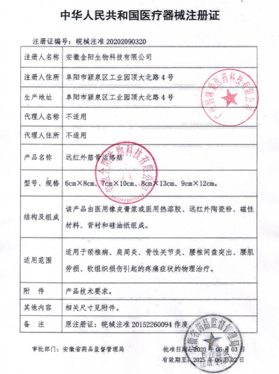 五福慈修遠(yuǎn)紅外筋骨活絡(luò)貼適用于頸椎病、肩周炎、骨性關(guān)節(jié)炎,腰椎間盤突出、腰肌勞損、軟組織損傷引起的疼痛癥狀的物理治療。使用方法:外用。揭開蓋襯,貼于清潔患處,每日更換一次。
